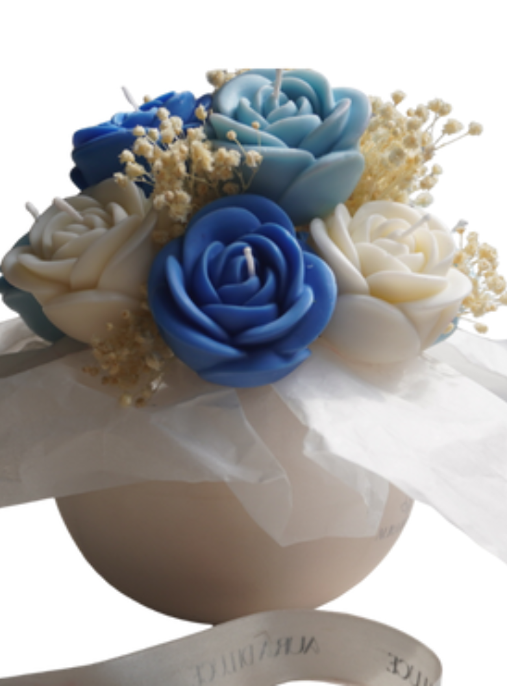 La brisa fresca que acaricia el alma. Inspirado en la costa italiana, el Bouquet Brezza di Sorrento captura la serenidad del mar en calma. Con una combinación de rosas en cera de soya azul profundo y blanco puro, este arreglo trae a tu hogar la claridad y la quietud de un día de verano en el Mediterráneo. Es el centro de mesa ideal para renovar la energía de tus espacios y regalarte un momento de paz visual.